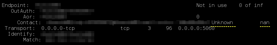 In this entry we see Unknown and under TTL nan (as underlined), this is normal using this configuration and what we expect to see because Asterisk gets that status and response time from OPTIONS requests, once implementing this change, you shouldn't have much to worry about if your router has to deal with an outage and switches to the mobile network.